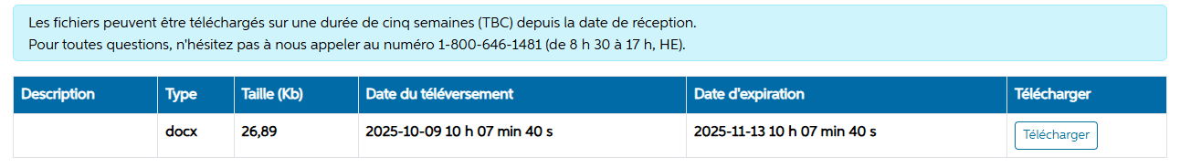 REMARQUE : Cette correspondance n’inclut pas les lettres automatisées relatives aux polices en vigueur. Les documents électroniques peuvent être téléchargés jusqu’à cinq (5) semaines à compter de la date de leur envoi et être consultés à tout moment par le biais de webcappow.